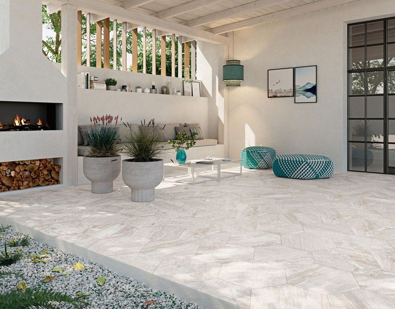 Azulejo porcelánico Oberon White Hexagonal Antideslizante 48x56 - Caja de 6 piezas / 1,2 m2
